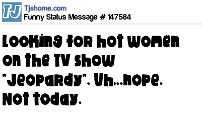 X says Looking for hot women on the TV show "Jeopardy". Uh,..nope. Not today.