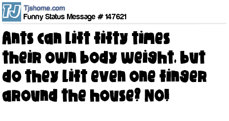 X says Ants can lift fifty times their own body weight, but do they lift even one finger around the house? NO!