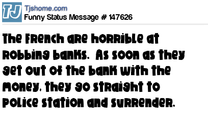 X The French are horrible at robbing banks. As soon as they get out of the bank with the money, they go straight to police station and surrender.
