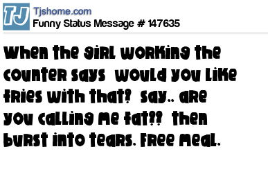X says When the girl working the counter says “would you like fries with that?” say..”are you calling me fat??” then burst into tears. Free meal.