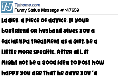 X says Ladies, a piece of advice. If your boyfriend or husband gives you a facial/spa treatment as a gift, be a little more specific. After all, it might not be a good idea to post how happy you are that he gave you "a facial".