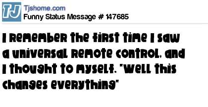 - # 162752 The first time I got a universal remote control, I thought to myself "This changes everything."