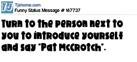 X says Turn to the person next to you to introduce yourself and say "Pat McCrotch".