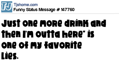 X says Just one more drink and then I'm outta here" is one of my favorite lies.