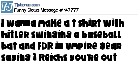 X says I wanna make a t shirt with hitler swinging a baseball bat and FDR in umpire gear saying 3 Reichs you're out