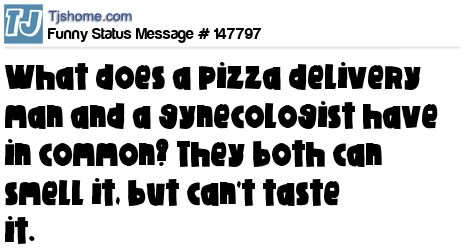 - # 45293 what do a pizza delivery guy and male gynecologist have in common? They can SMELL it, but they can't EAT it lol