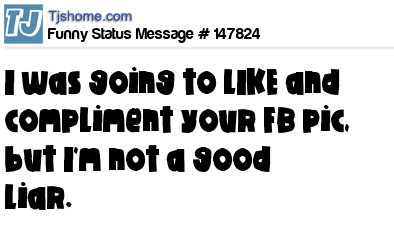 X says I was going to LIKE and compliment your FB pic, but I'm not a good liar.