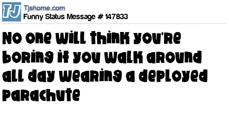 - # 134871 No one will think you're boring if you walk around wearing a deployed parachute