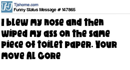 X says I blew my nose and then wiped my ass on the same piece of toilet paper. Your move Al Gore