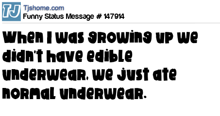 X says When I was growing up we didn't have edible underwear, we just ate normal underwear.