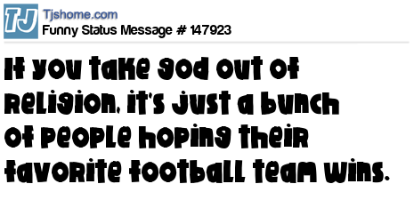 X says If you take god out of religion, it's just a bunch of people hoping their favorite football team wins.
