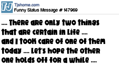 - # 147971 .... There are two things in life that are certain ... and I took care of one of them today .... I'm really hoping the other one will hold off for quite a while!!!