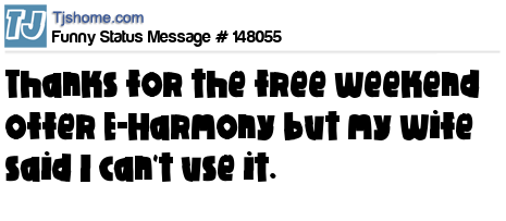 X Thanks for the free weekend offer E-Harmony but my wife said I can't use it.