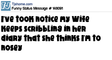 X I've took notice my Wife keeps scribbling in her diary that she thinks I'm to nosey