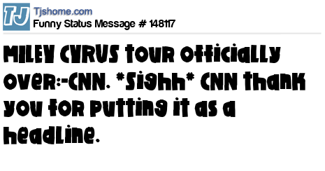 X says MILEY CYRUS tour officially over:-CNN. *Sighh* CNN thank you for putting it as a headline.