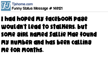 X says I had hoped my facebook page wouldn't lead to stalkers, but some girl named Sallie Mae found my number and has been calling me for months.