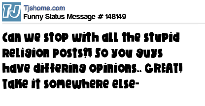 X Can we stop with all the stupid religion posts?! So you guys have differing opinions.. GREAT! Take it somewhere else-