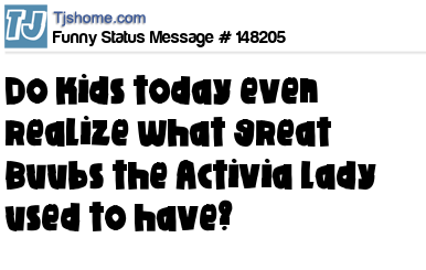 X says Do kids today even realize what great Buubs the Activia lady used to have?
