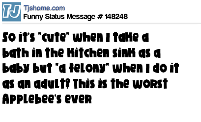 X says So it's "cute" when I take a bath in the kitchen sink as a baby but "a felony" when I do it as an adult? This is the worst Applebee's ever