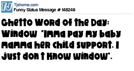 - # 102464 Ghetto Word of the Day: Window “Imma pay my baby mamma her child support. I just don't know window”.