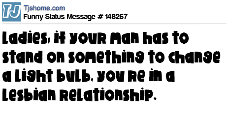 X says Ladies; if your man has to stand on something to change a light bulb, you’re in a lesbian relationship.