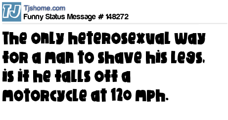 X says The only heterosexual way for a man to shave his legs, is if he falls off a motorcycle at 120 mph.