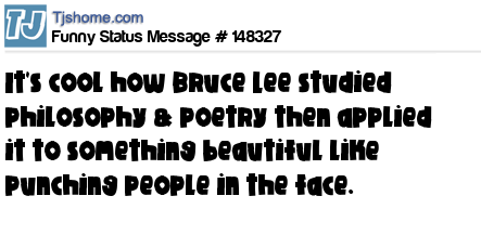 - # 200489 I love Bruce Lee because he studied art and poetry and decided the most beautiful form of self expression is punching someone in the face