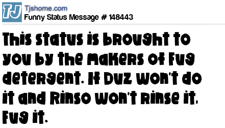 X says This status is brought to you by the makers of Fug detergent. If Duz won't do it and Rinso won't rinse it, Fug it.
