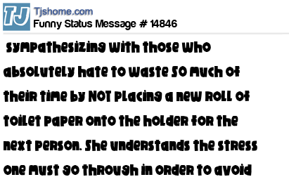 X is sympathesizing with those who absolutely hate to waste SO much of their time by NOT placing a new roll of toilet paper onto the holder for the next person. She understands the stress one must go through in order to avoid this strenuous task!