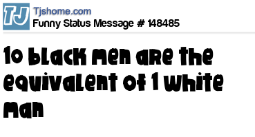 1 black man = 10 white men ... when it comes to the length of their d*cks