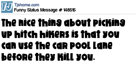 X The nice thing about picking up hitch hikers is that you can use the car pool lane before they kill you.