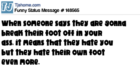 X says When someone says they are gonna break their foot off in your ass, it means that they hate you but they hate their own foot even more.