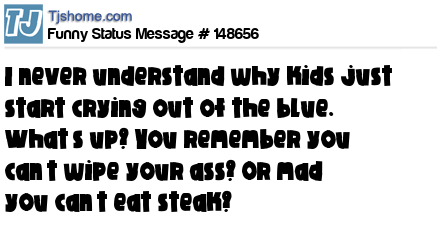 X says I never understand why kids just start crying out of the blue. What’s up? You remember you can’t wipe your ass? Or mad you can’t eat steak?