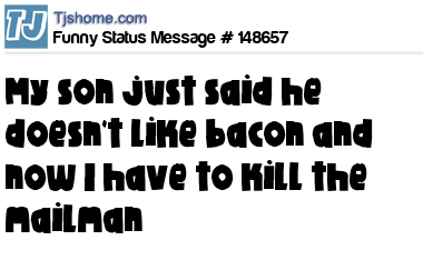 X says My son just said he doesn't like bacon and now I have to kill the mailman