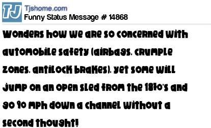 X wonders how we are so concerned with automobile safety (airbags, crumple zones, antilock brakes), yet some will jump on an open sled from the 1870's and go 90 mph down a channel without a second thought!