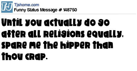 X says Until you actually do go after all religions equally, spare me the hipper than thou crap.