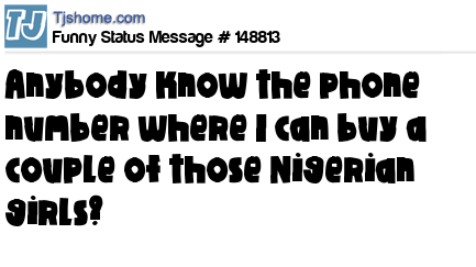 X Anybody know the phone number where I can buy a couple of those Nigerian girls?