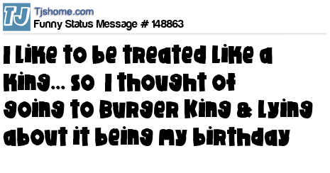 X says I like to be treated like a king... so I thought of going to Burger King & lying about it being my birthday