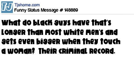 X says What do black guys have that's longer than most white men's and gets even bigger when they touch a woman? Their criminal record.