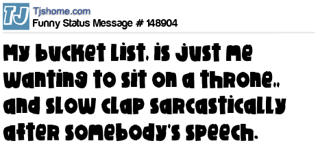 X  My bucket list, is just me wanting to sit on a throne,, and slow clap sarcastically after somebody's speech.