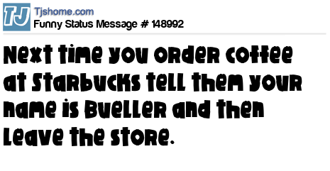 - # 125566 Sometimes when I'm bored, I order coffee at Starbucks and tell them my name is Bueller.....Then just leave!