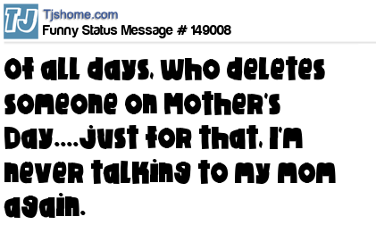 X Of all days, who deletes someone on Mother's Day....just for that, I'm never talking to my mom again.