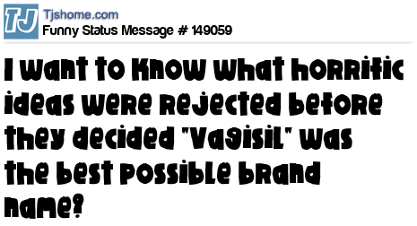 X says I want to know what horrific ideas were rejected before they decided "Vagisil" was the best possible brand name?