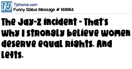 X says The Jay-Z incident - That's why I strongly believe women deserve equal rights. And lefts.