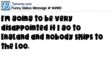 X says I'm going to be very disappointed if I go to England and nobody skips to the loo.