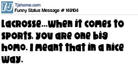 X Lacrosse...when it comes to sports, you are one big h0m0. I meant that in a nice way.