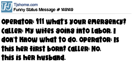 X says Operator: 911 what's your emergency? Caller: My wifes going into labor, I don't know what to do. Operator: Is this her first born? Caller: No, this is her husband.