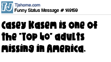 - # 149167 So Casey Kasem is missing, they should get Scoob and the gang to solve this mystery.
