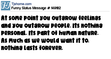 X says At some point you outgrow feelings and you outgrow people. Its nothing personal. Its part of human nature. As much as we would want it to, nothing lasts forever.