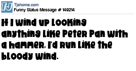 X says If I wind up looking anything like Peter Pan with a hammer, I'd run like the bloody wind.